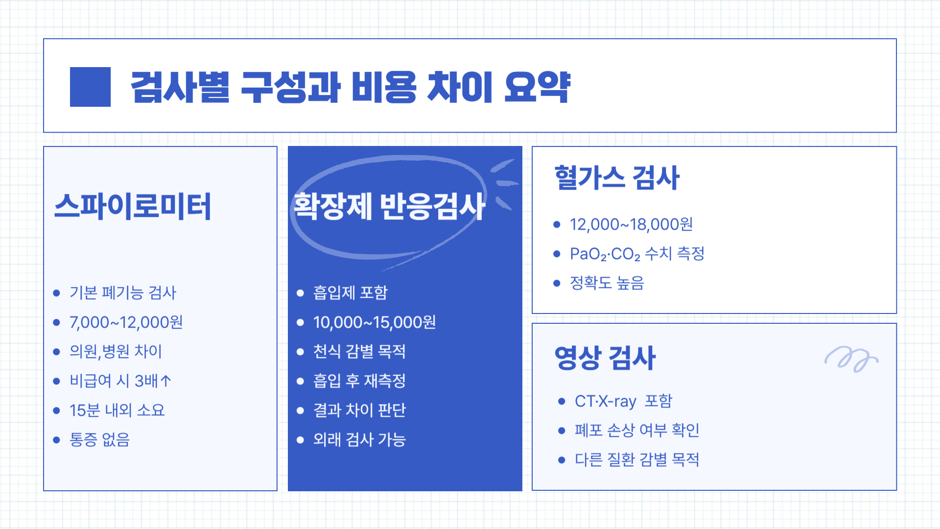 진단 검사 종류, 폐기능 수치 해석, 약물 선택 기준, 산소 적용 조건까지 구체적으로 나뉩니다.
